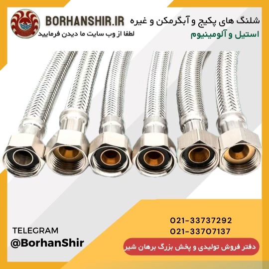 انواع شیلنگ پکیج ٫ ابگرمکن ٫ رابط و زیر دستشویی موجود در ۲ مدل استیل و المینیوم