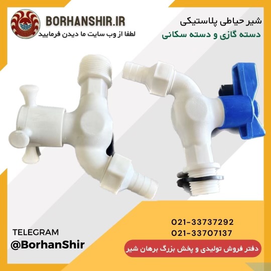 شیر حیاطی پلاستیکی موجود در 2 مدل دسته سکانی و دسته گازی در 2 سایز 1/2 و 3/4